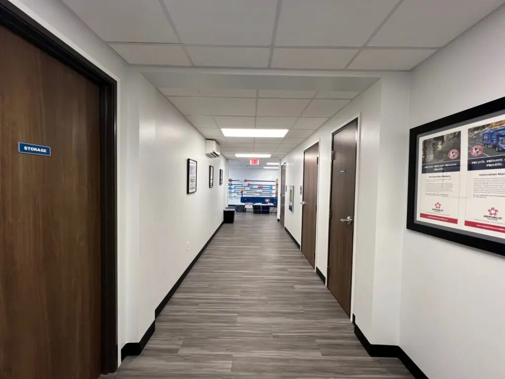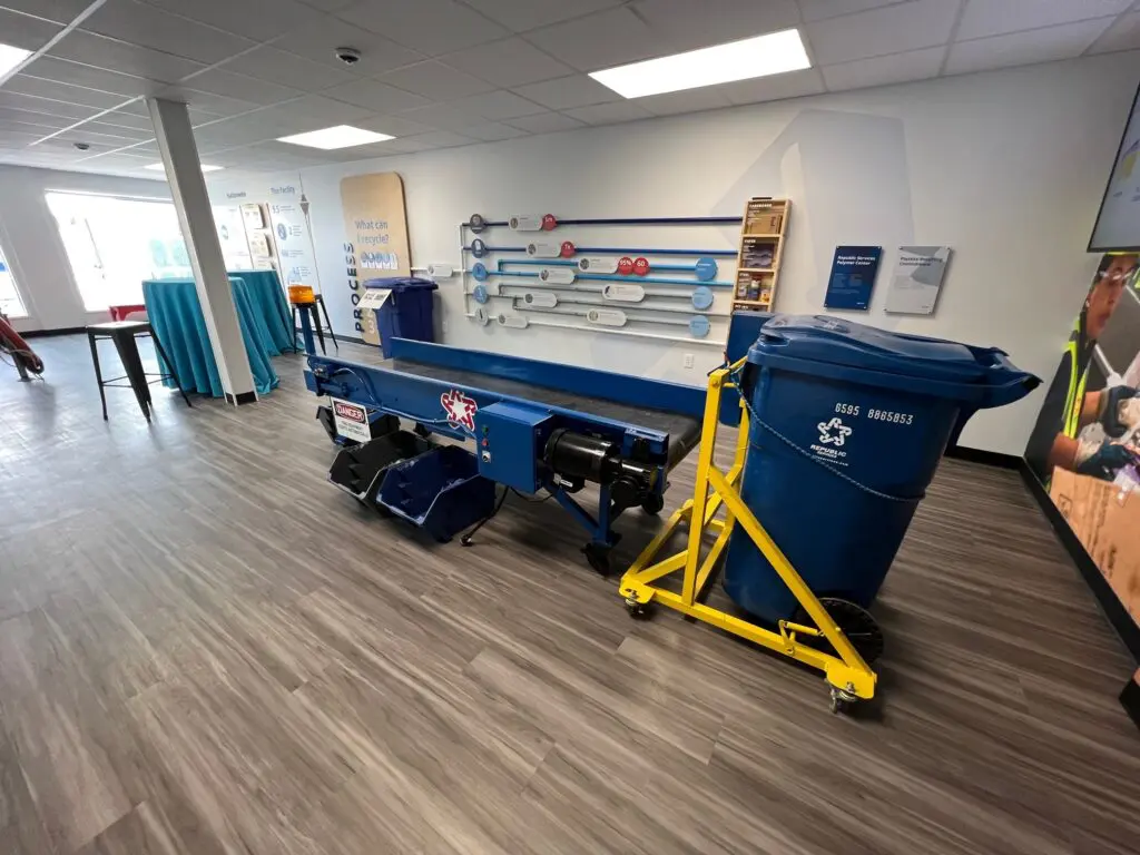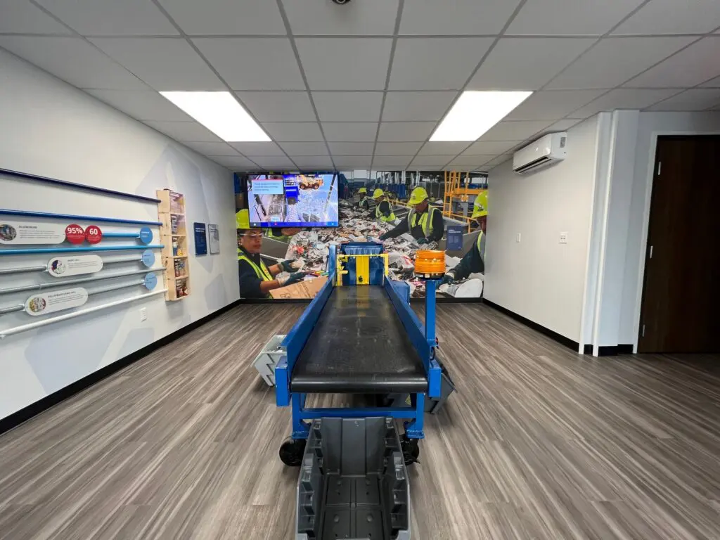 The building was constructed from three 40-ft. shipping containers, two 20-ft. shipping containers, and a 480-square-foot courtyard comprised of metal building components. The build’s uniqueness is shown on the outside, being made primarily from shipping containers, and on the inside, having educational recycling exhibits. The Republic truck cab display, and miniature Material Recovery Facility (MRF), accompanied by several other interactive displays, make the experience one of a kind.