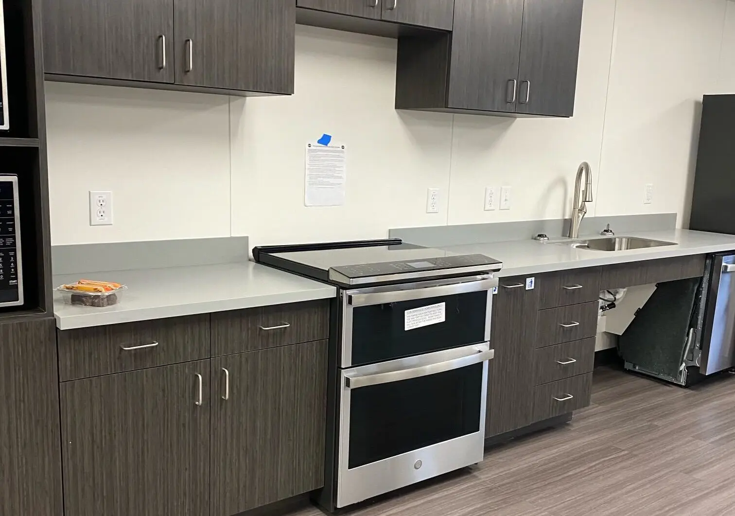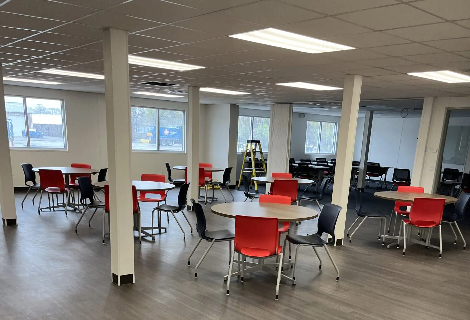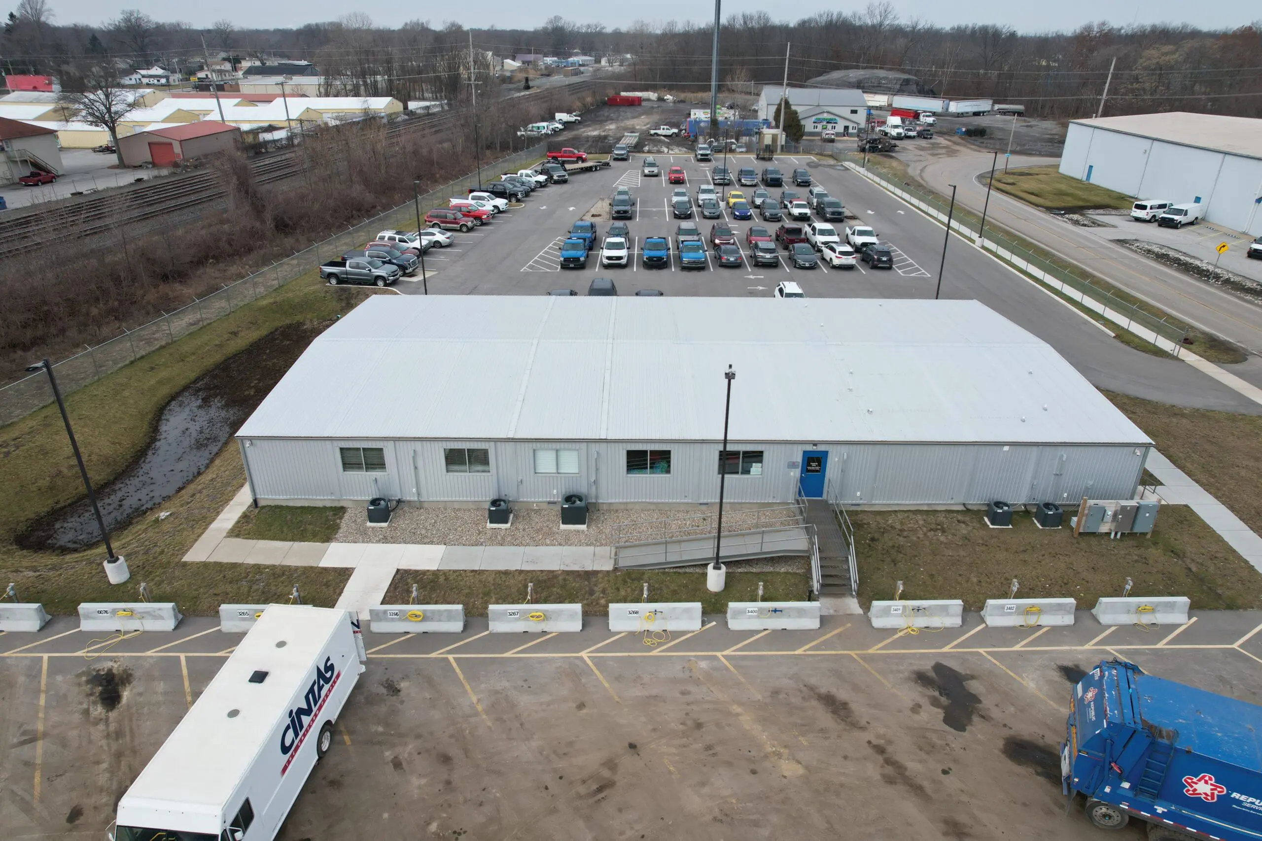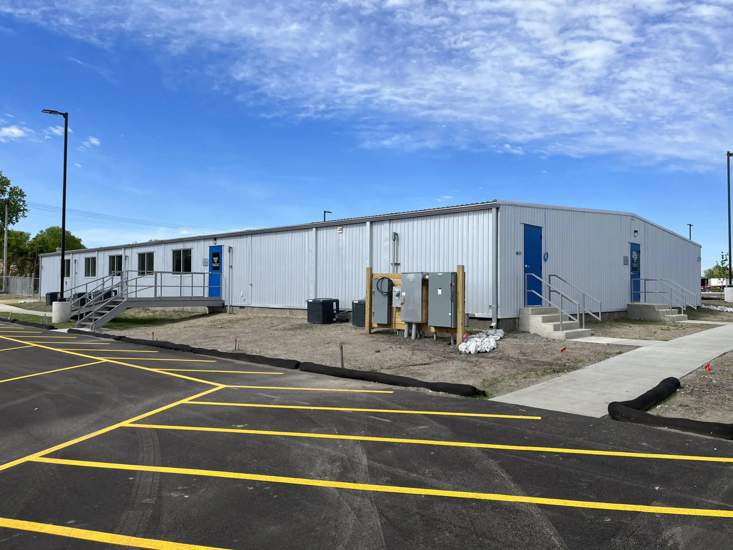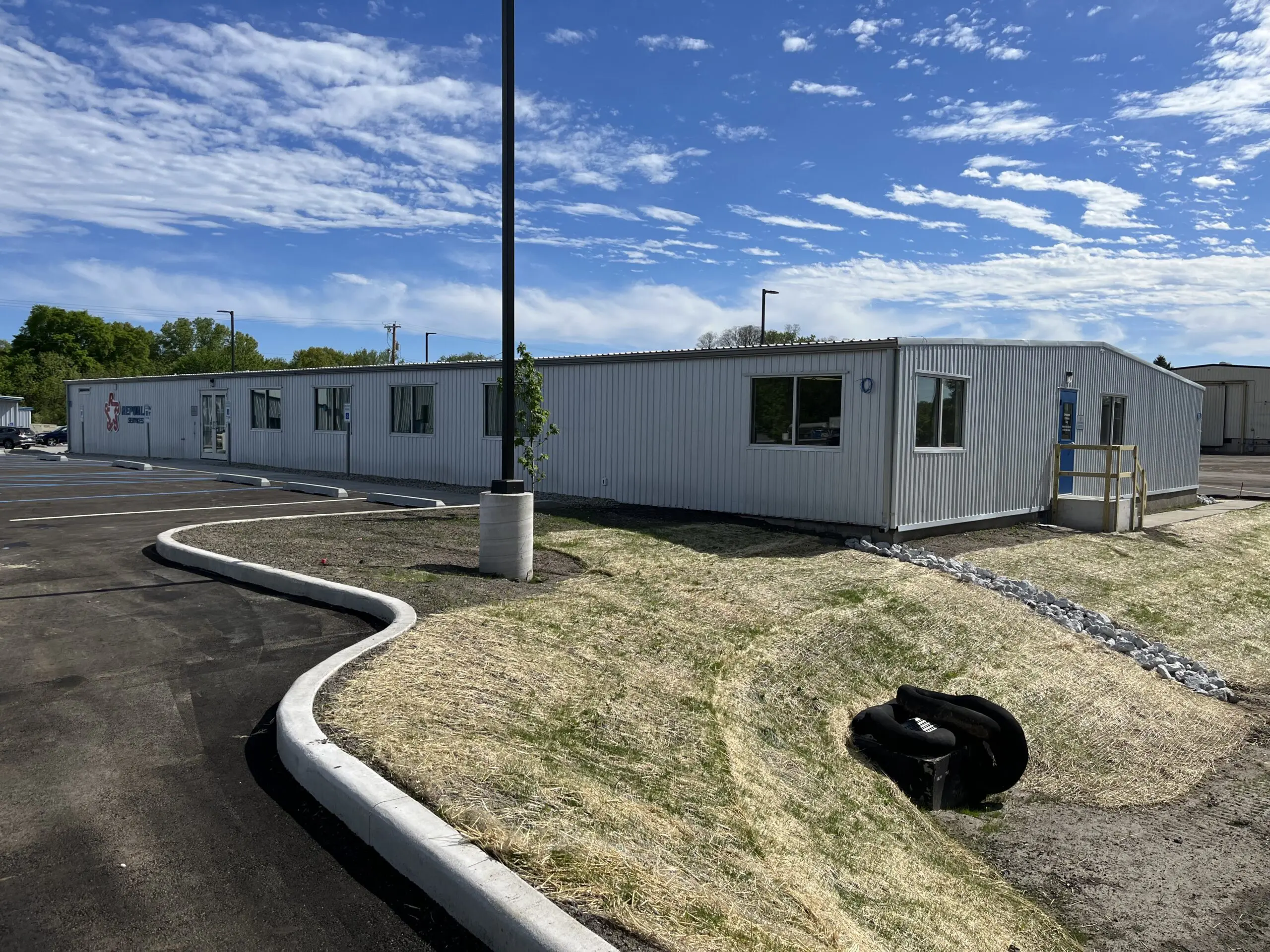 The new building was equipped with new utilities, a parking lot, and a drainage pond. The parking lot had 13 bays for trucks, each with block heaters. The building was brought in by ten 12’ x 60’ sections and set with a crane. The foundation was made of concrete and had a 4′ crawl space. The on-site finishing work included windows, cabinets, tile showers, and countertops. The building features offices for the Dispatch, the Operations Manager, the Division Manager, and Operations Supervisors. Additionally, it has a conference room, a break room with a kitchenette, and locker rooms with shower rooms.